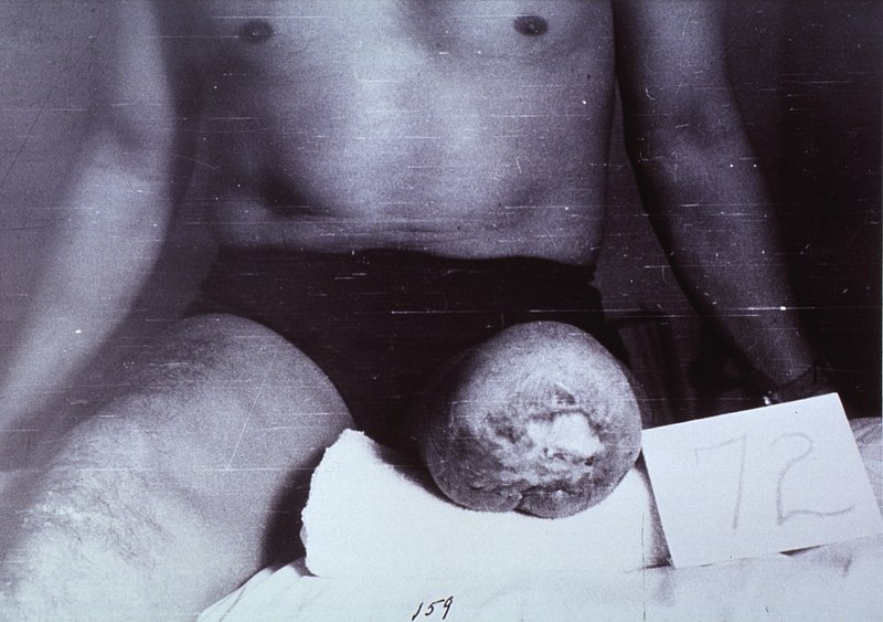 A man (Choo Yihleang), facing front, with a massive spherical tumour on the right side of his neck. Gouache, 18--, after Lam… https://www.rawpixel.com/image/13957456/image-cartoon-face-personFree Image from public domain license