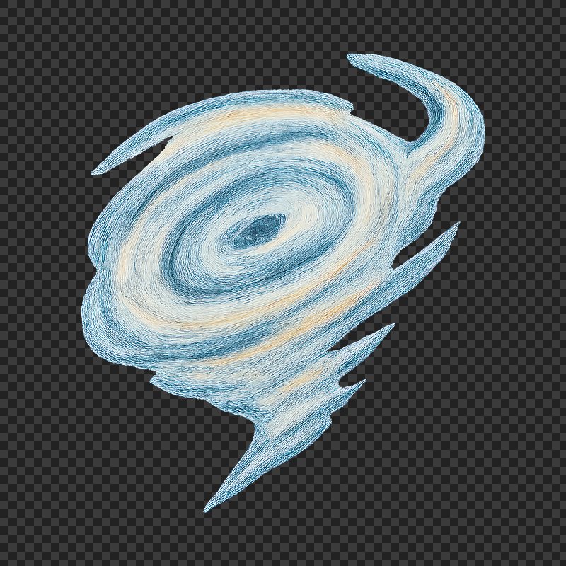 Whimsical blue tornado with clouds. https://www.rawpixel.com/image/20735883/whimsical-blue-tornado-with-cloudsView license