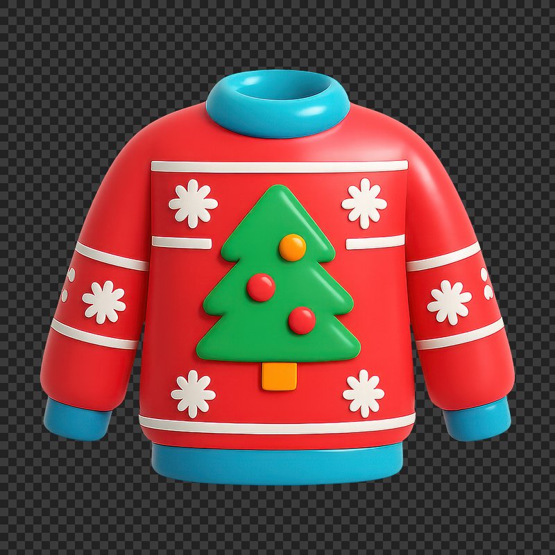 PNG Festive 3D Christmas sweater design. https://www.rawpixel.com/image/19618587/png-festive-christmas-sweater-designView license
