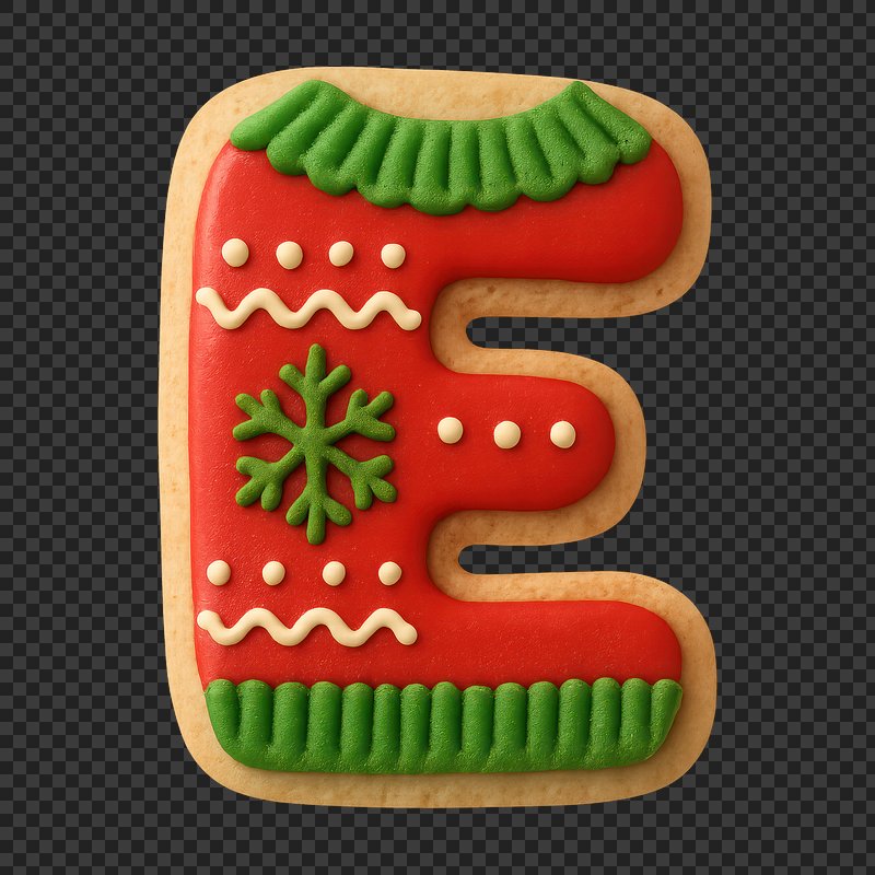 PNG Festive cookie letter E https://www.rawpixel.com/image/23900411/png-festive-cookie-letterView license