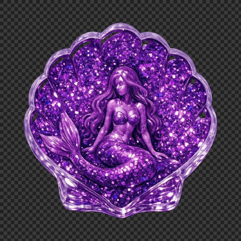 PNG Glittering mermaid in purple shell. https://www.rawpixel.com/image/25280015/png-glittering-mermaid-purple-shellView license