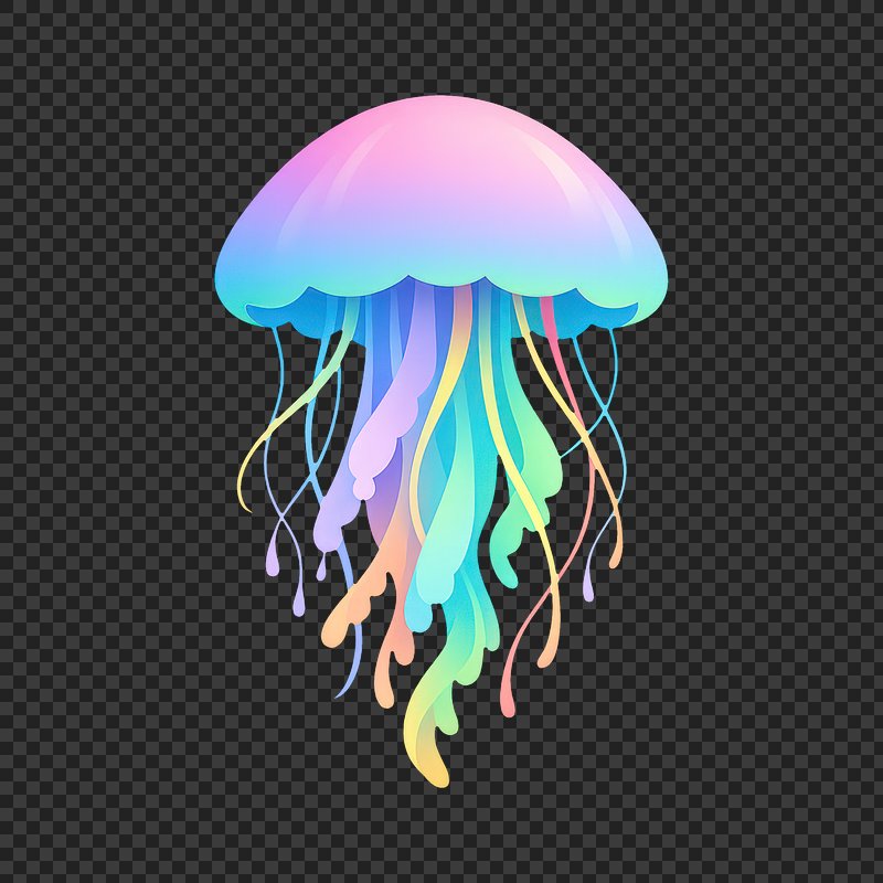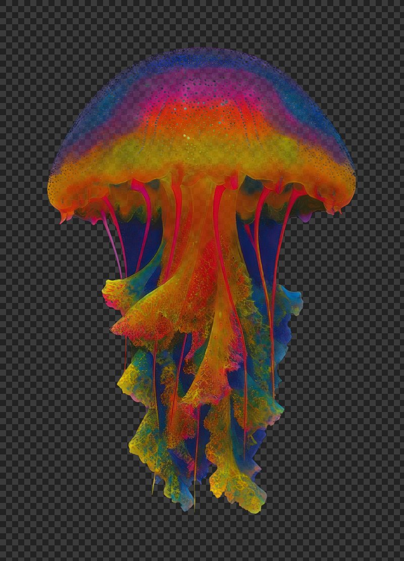 PNG Vibrant jellyfish with colorful tentacles. https://www.rawpixel.com/image/25380630/png-vibrant-jellyfish-with-colorful-tentaclesView license