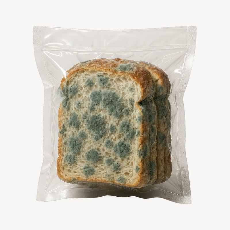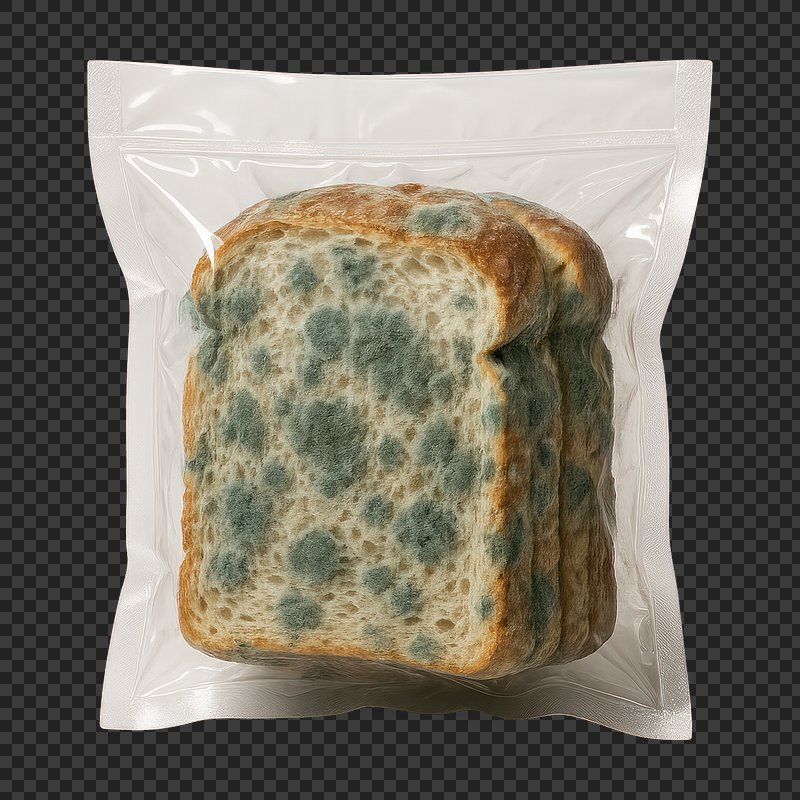 Moldy bread in sealed packaging. https://www.rawpixel.com/image/18404260/moldy-bread-sealed-packagingView license