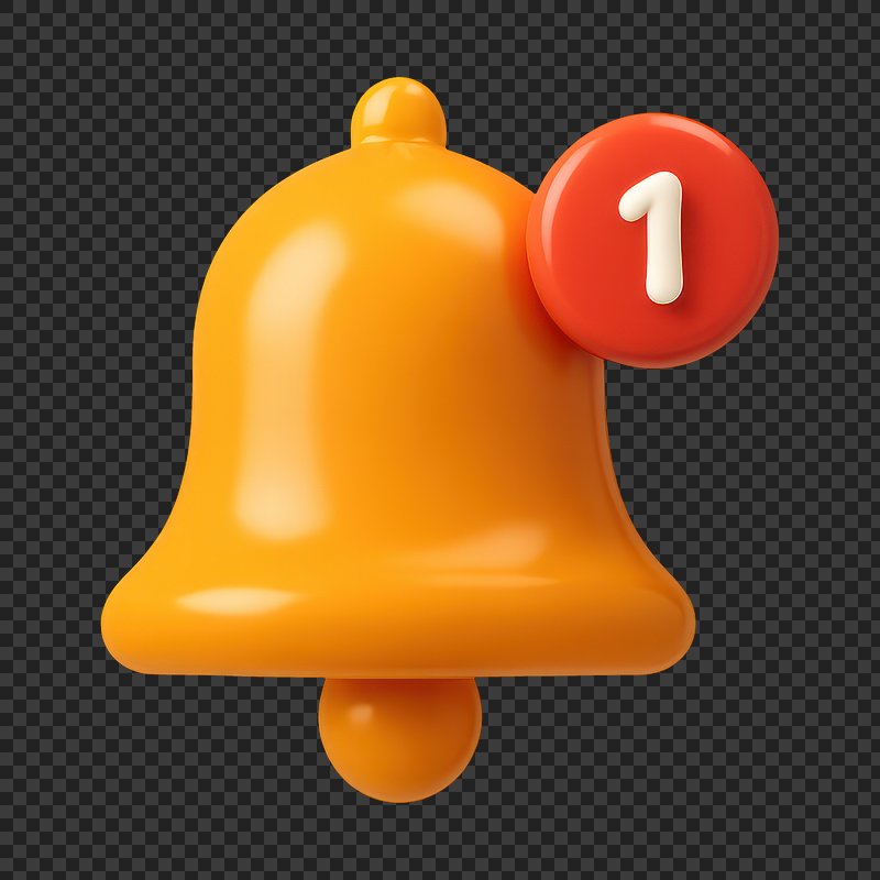 PNG 3D notification bell icon illustration. https://www.rawpixel.com/image/19628198/png-notification-bell-icon-illustrationView license