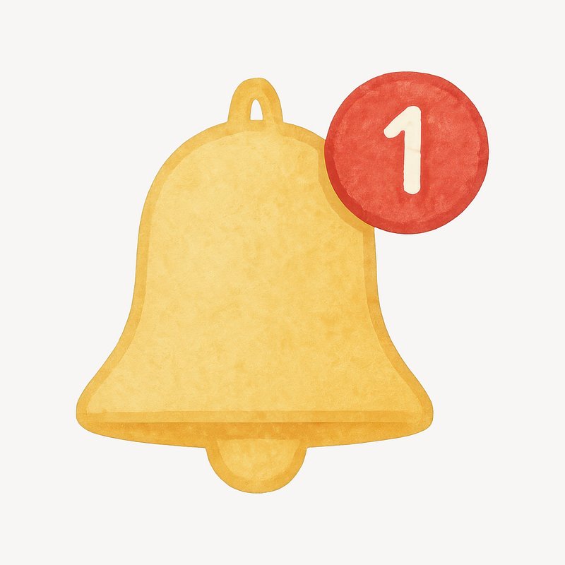 Notification bell with alert. https://www.rawpixel.com/image/23355251/notification-bell-with-alertView license