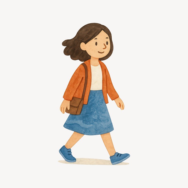 Charming girl walking illustration. https://www.rawpixel.com/image/20636470/charming-girl-walking-illustrationView license