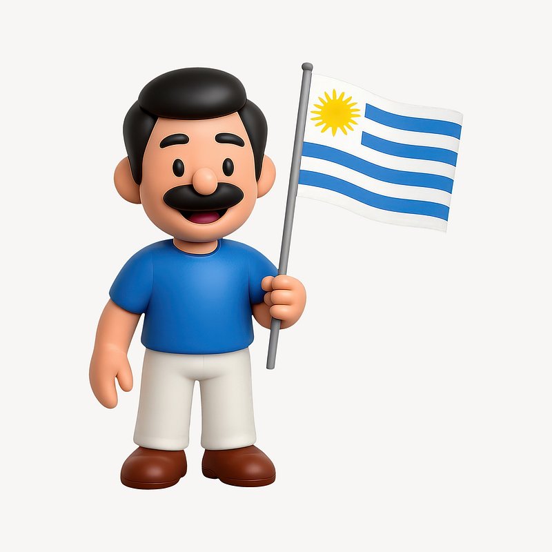 Cartoon character holding Uruguayan flag. https://www.rawpixel.com/image/20477612/cartoon-character-holding-uruguayan-flagView license