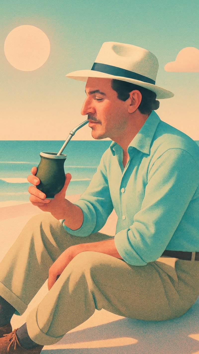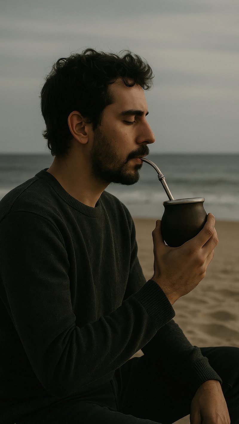 Man sipping mate beachside. https://www.rawpixel.com/image/22512367/man-sipping-mate-beachsideView license