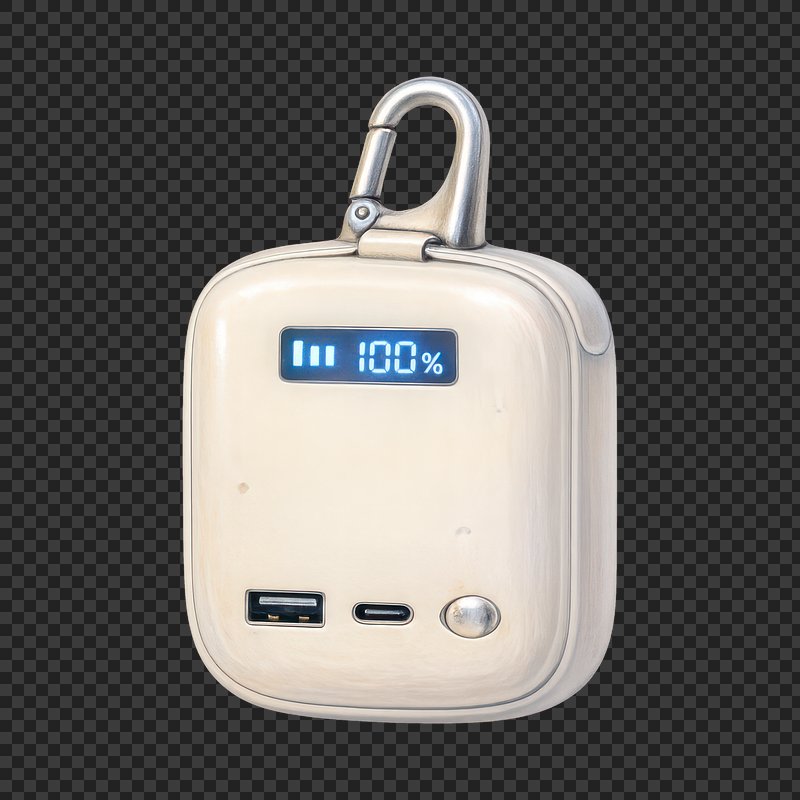 PNG Portable charger with carabiner. https://www.rawpixel.com/image/25397040/png-portable-charger-with-carabinerView license