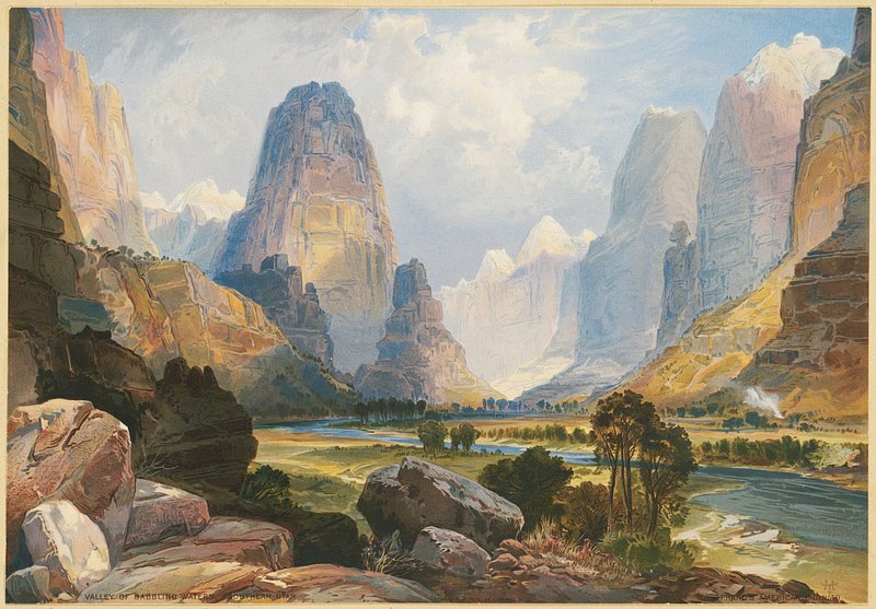 Valley of babbling waters, southern Utah / TM ; Prang's American Chromo., L. Prang & Co., publisher https://www.rawpixel.com/image/7689124/image-thomas-moran-prangFree Image from public domain license