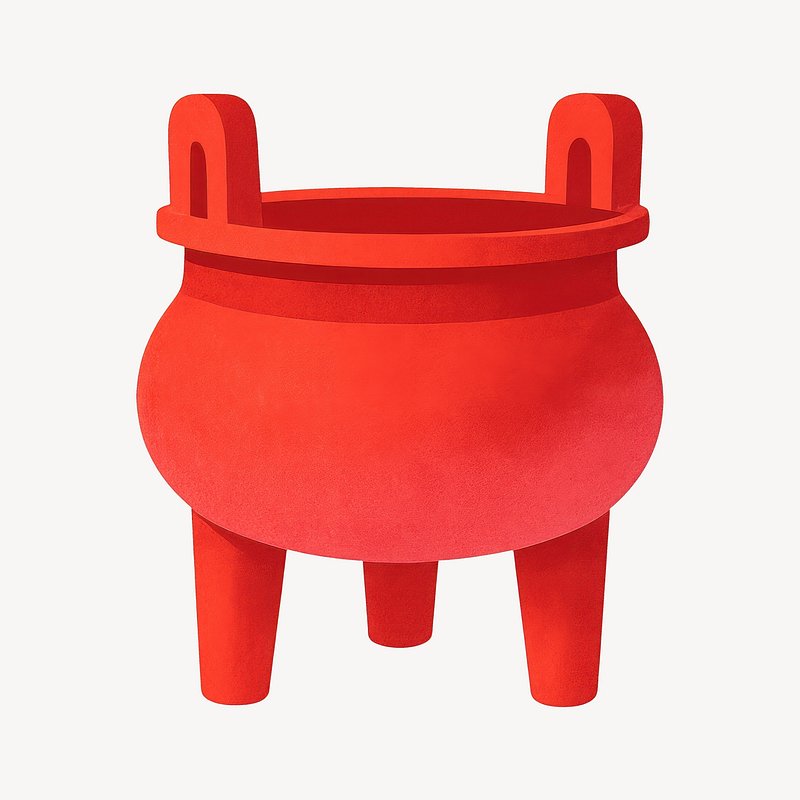 Red cauldron with three legs. https://www.rawpixel.com/image/24703402/red-cauldron-with-three-legsView license