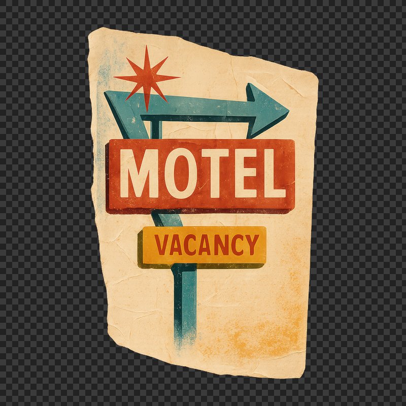 Vintage motel vacancy sign illustration. https://www.rawpixel.com/image/21767931/vintage-motel-vacancy-sign-illustrationView license