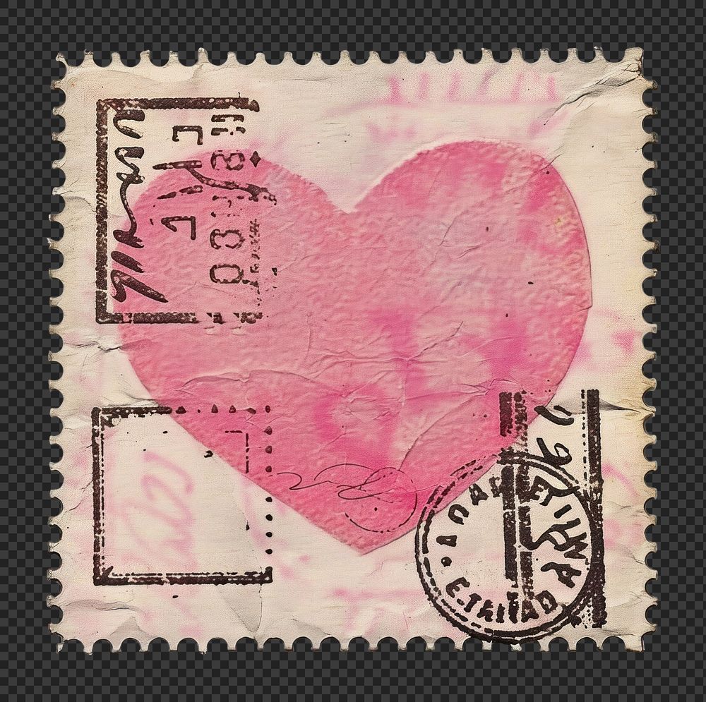 PNG Vintage postage stamp with heart symbol pink romantic. https://www.rawpixel.com/image/16819748/png-vintage-postage-stamp-with-heart-symbol-pink-romanticView license