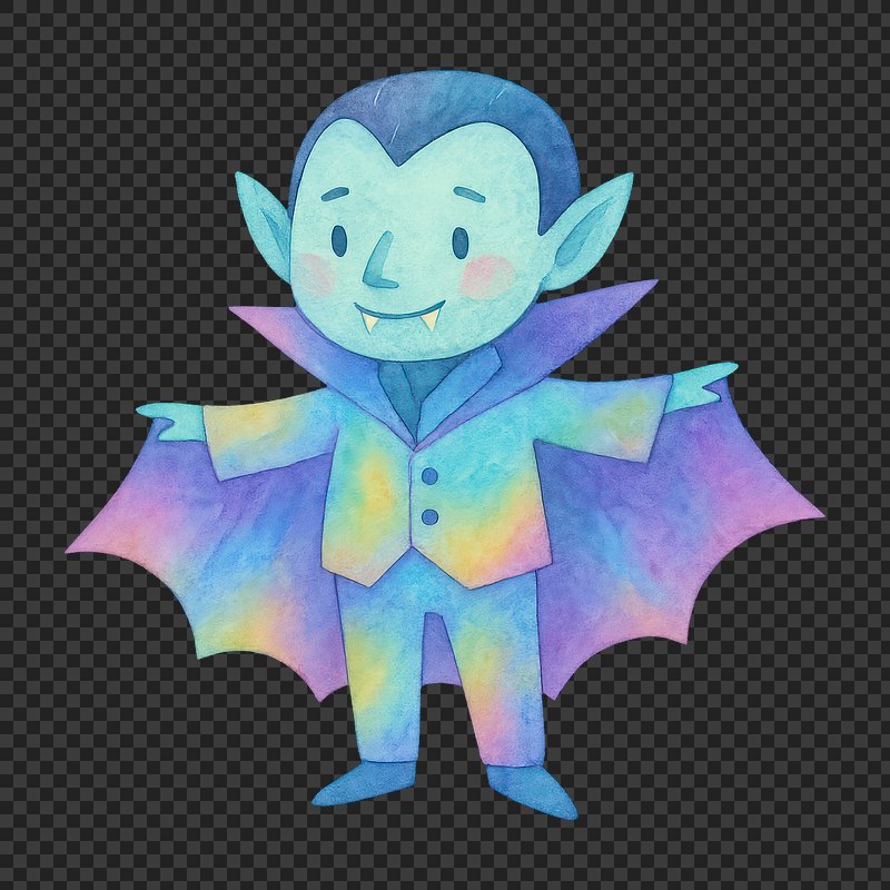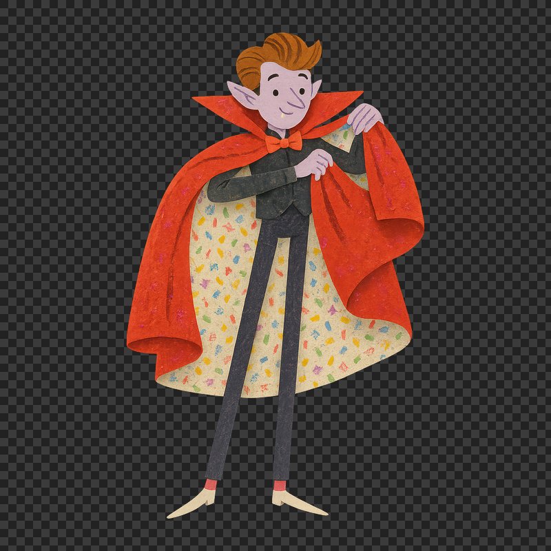 PNG Charming vampire in colorful cape. https://www.rawpixel.com/image/20653032/png-charming-vampire-colorful-capeView license