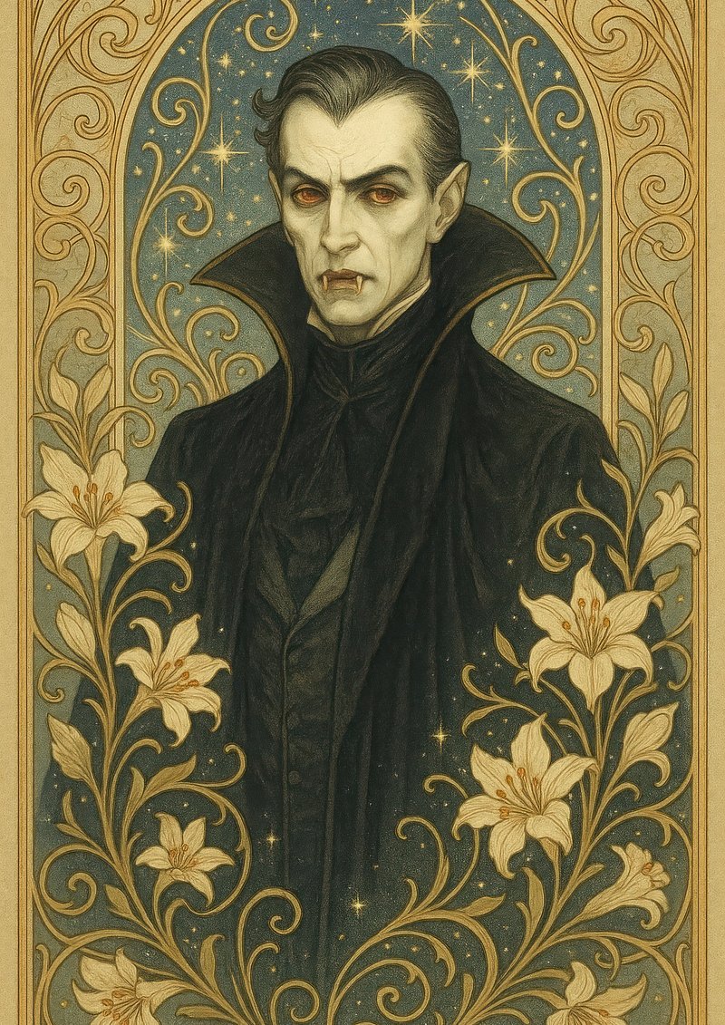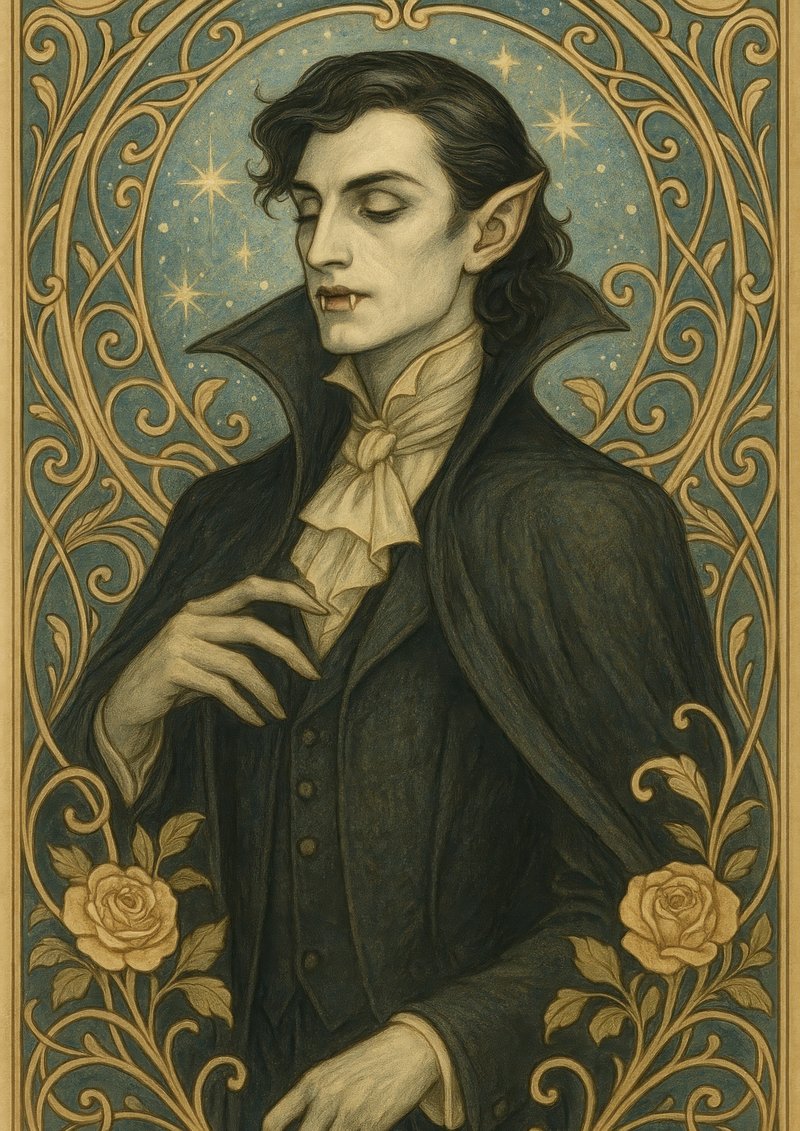 Elegant vampire art nouveau illustration. https://www.rawpixel.com/image/17979103/elegant-vampire-art-nouveau-illustrationView license