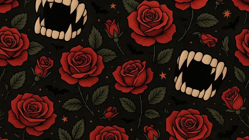 Gothic roses with vampire fangs. https://www.rawpixel.com/image/19691572/gothic-roses-with-vampire-fangsView license