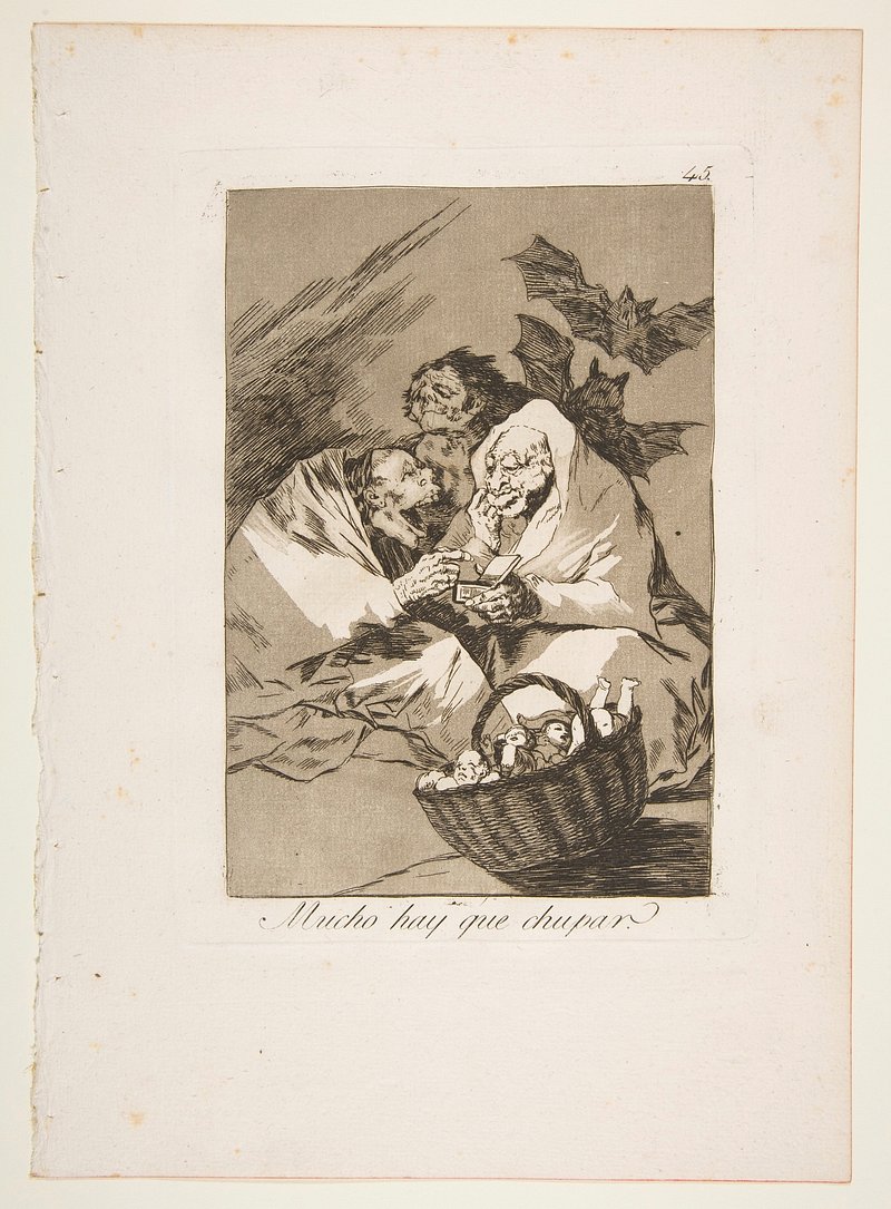 Plate 45 from 'Los Caprichos: There is Plenty to Suck (Mucho hay que chupar) https://www.rawpixel.com/image/8097687/plate-from-los-caprichos-there-plenty-suck-mucho-hay-que-chuparFree Image from public domain license