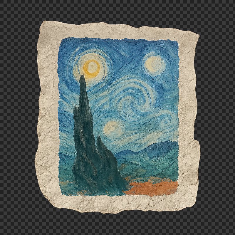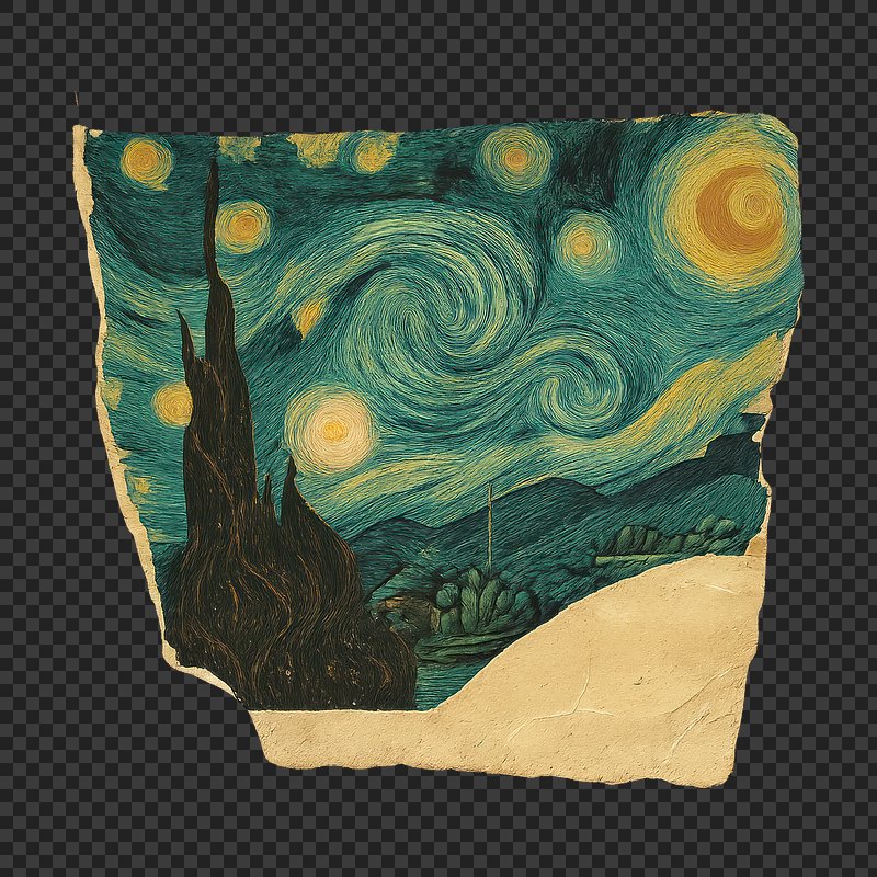 Png Starry night, Van Gogh, stamp sticker, transparent background, remixed by rawpixel https://www.rawpixel.com/image/6597098/png-aesthetic-stickerView license