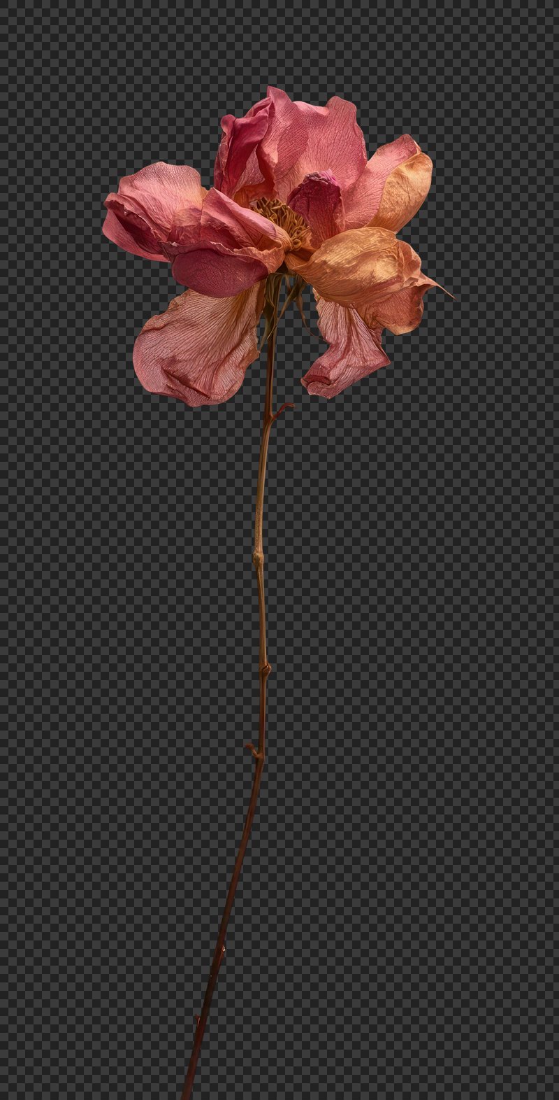 PNG Dried pink rose on stem. https://www.rawpixel.com/image/24021956/png-dried-pink-rose-stemView license