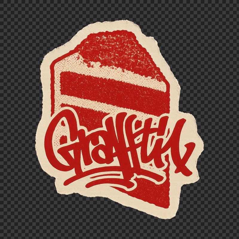 PNG Graffiti style red velvet cake. https://www.rawpixel.com/image/24512890/png-graffiti-style-red-velvet-cakeView license