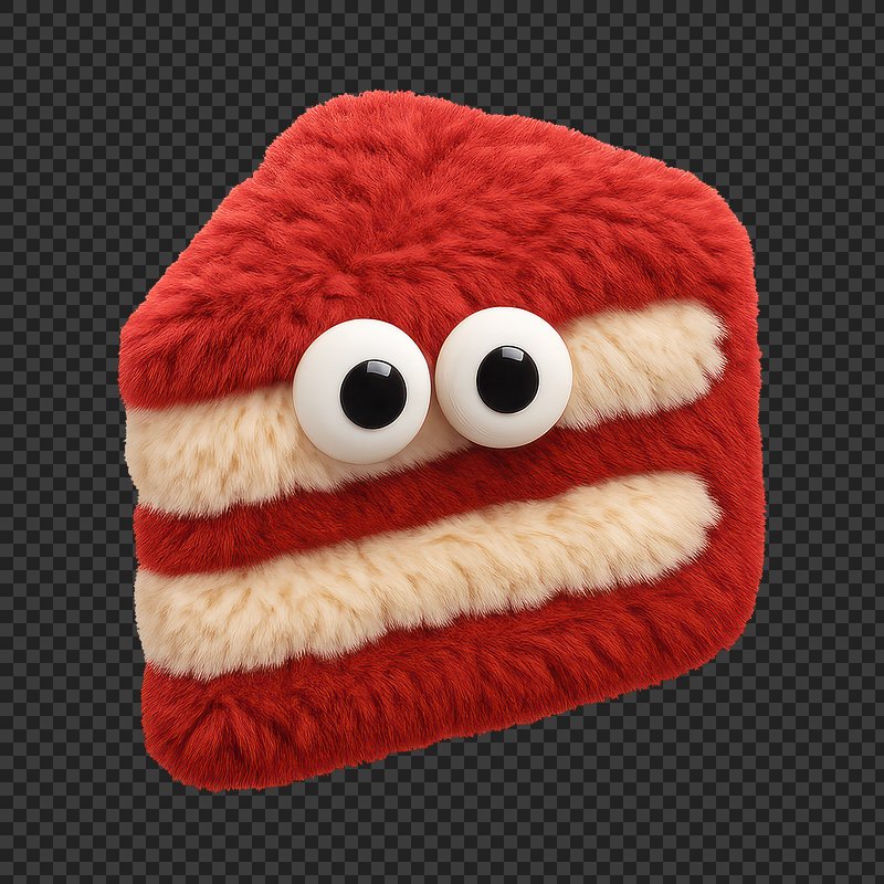 PNG Furry cake slice with eyes https://www.rawpixel.com/image/24634705/png-furry-cake-slice-with-eyesView license