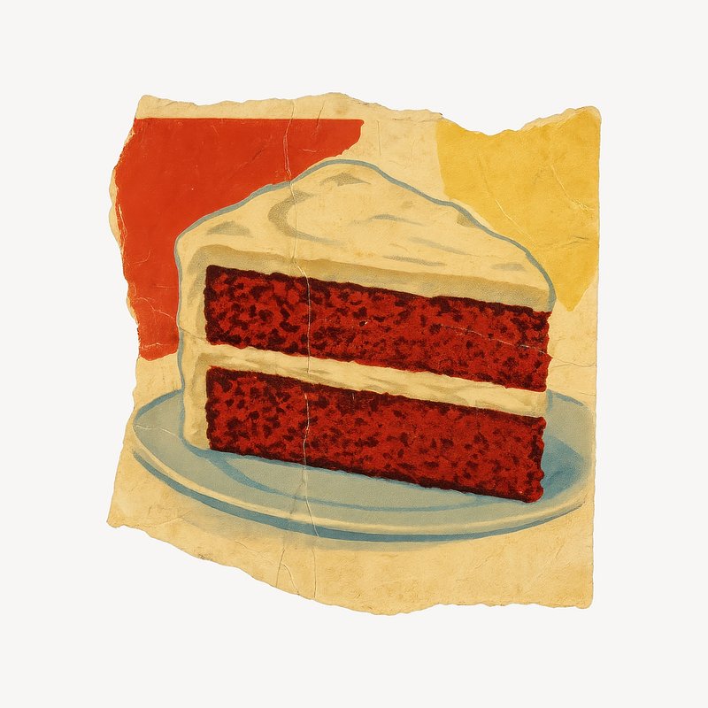 Red velvet cake slice illustration. https://www.rawpixel.com/image/24495218/red-velvet-cake-slice-illustrationView license