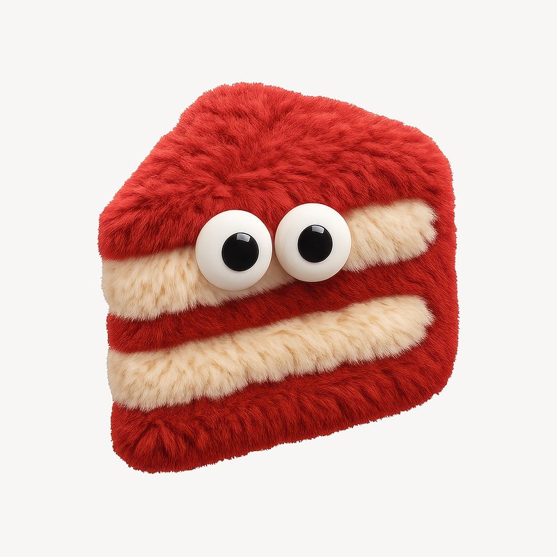 Furry cake slice with eyes. https://www.rawpixel.com/image/24711539/furry-cake-slice-with-eyesView license