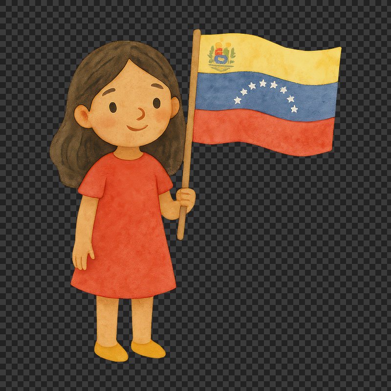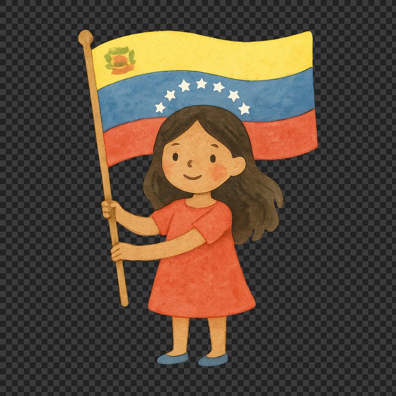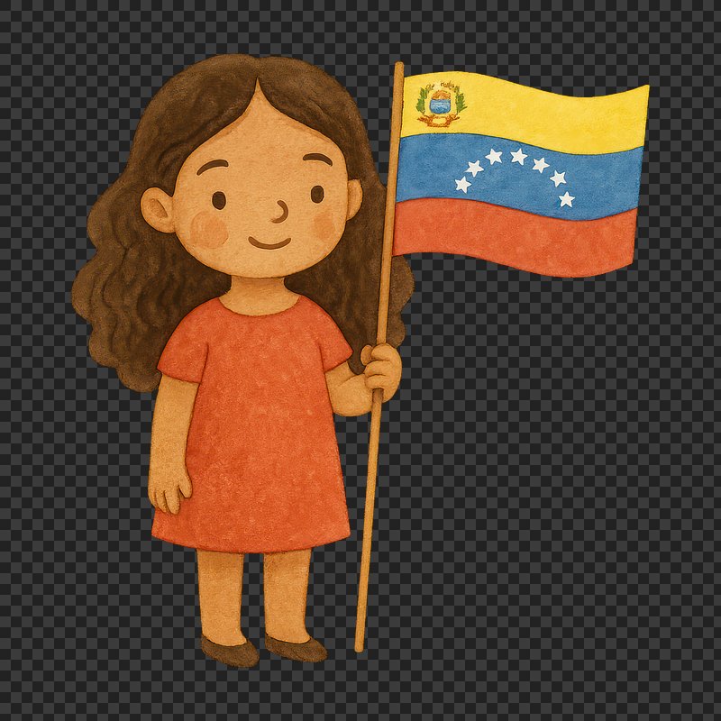 PNG Cartoon girl holding Venezuelan flag. https://www.rawpixel.com/image/19520443/png-cartoon-girl-holding-venezuelan-flagView license