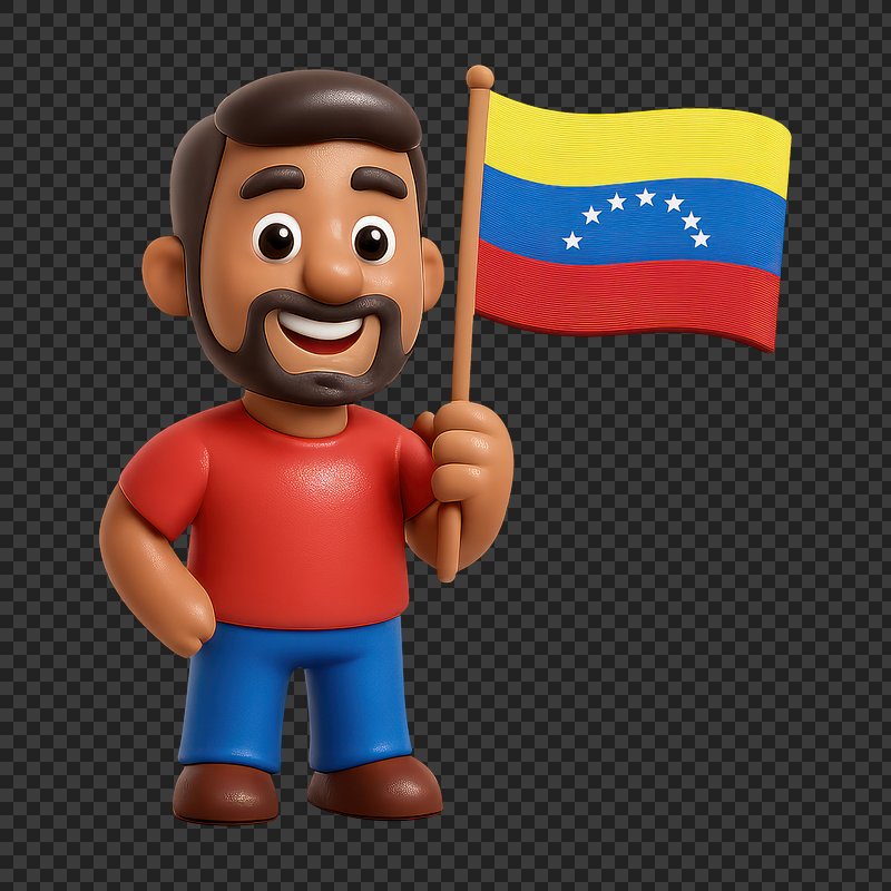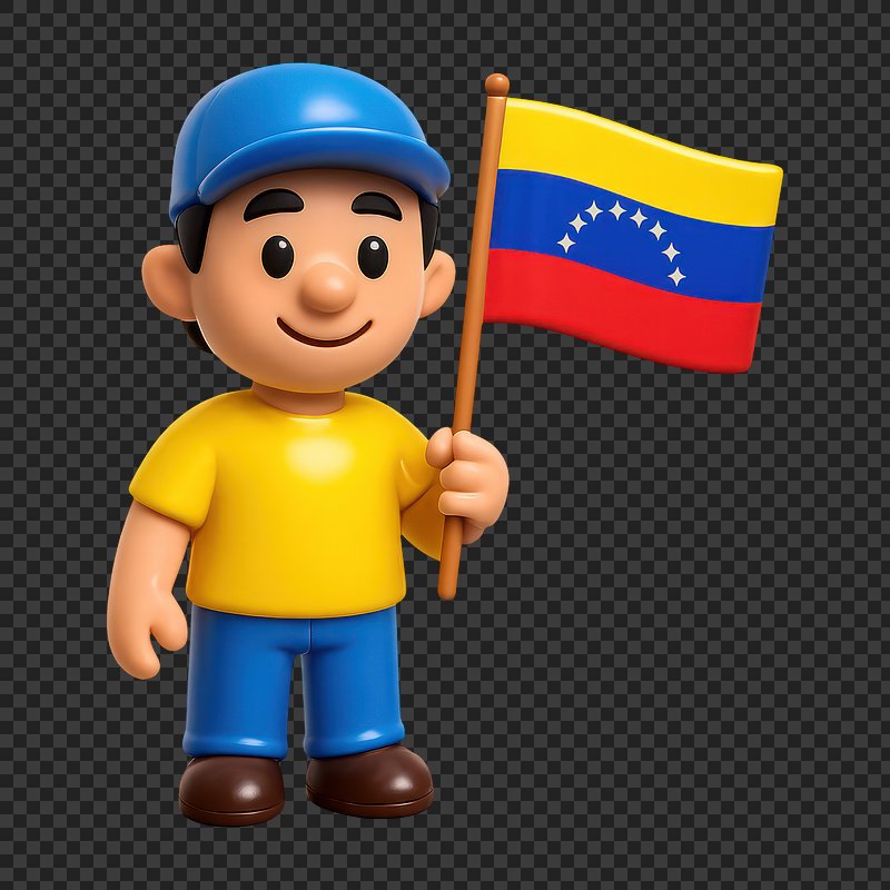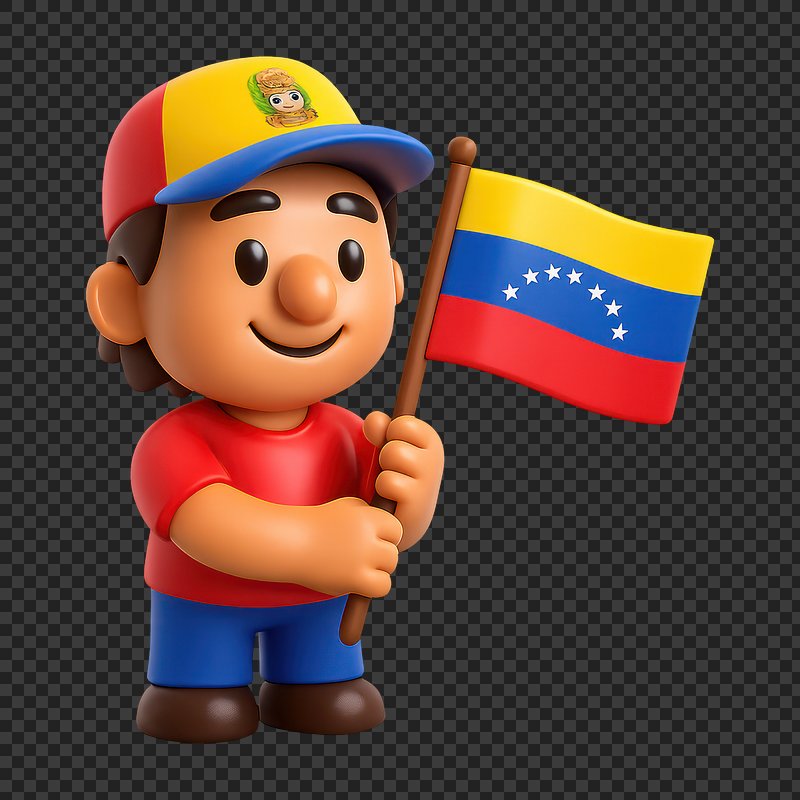 PNG Cartoon character holding Venezuelan flag. https://www.rawpixel.com/image/19524144/png-cartoon-character-holding-venezuelan-flagView license