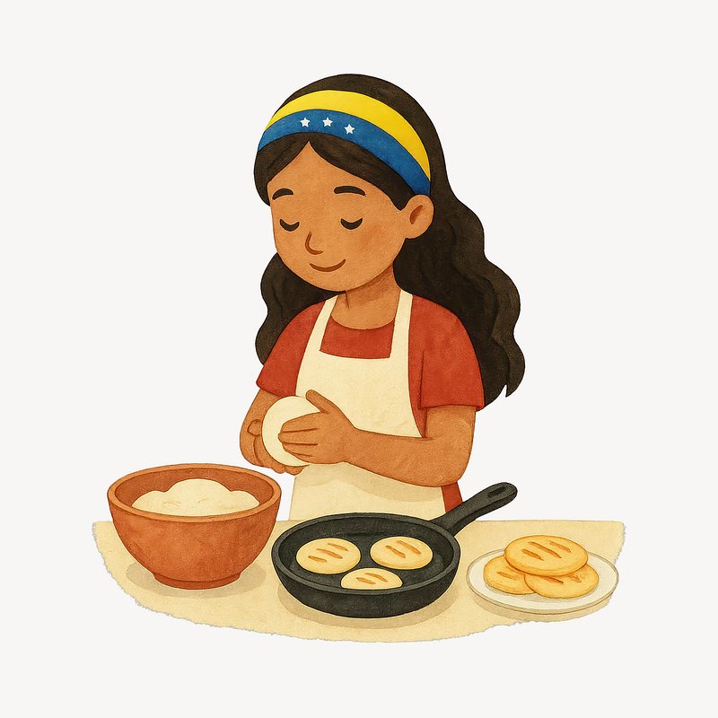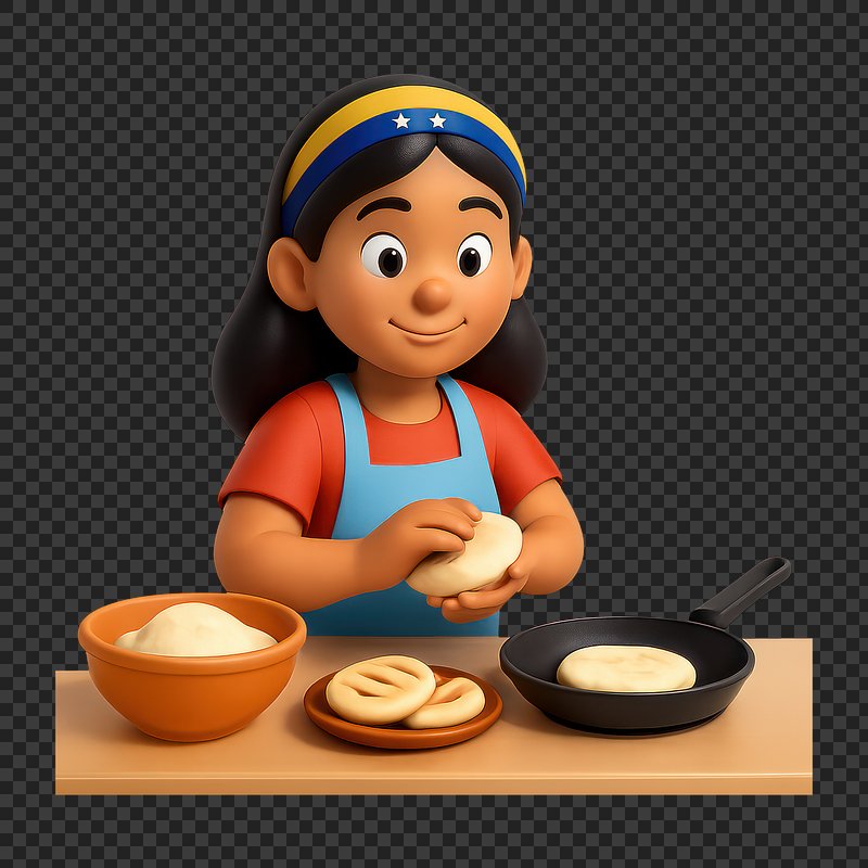 PNG Venezuelan girl cooking arepas. https://www.rawpixel.com/image/19057448/png-venezuelan-girl-cooking-arepasView license