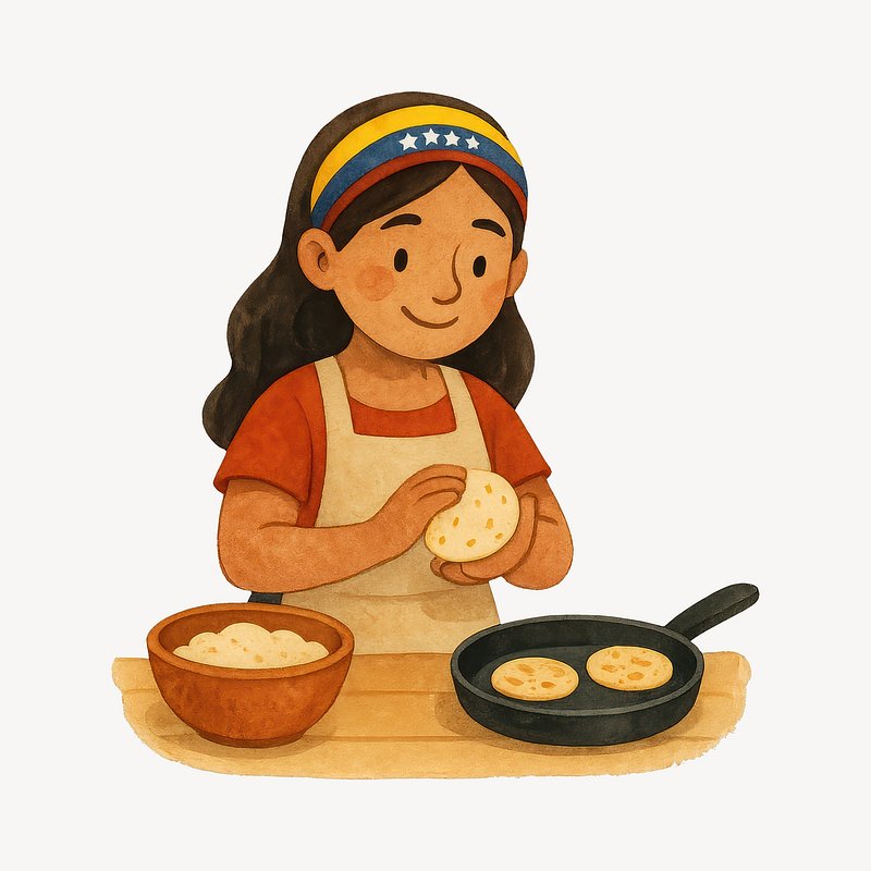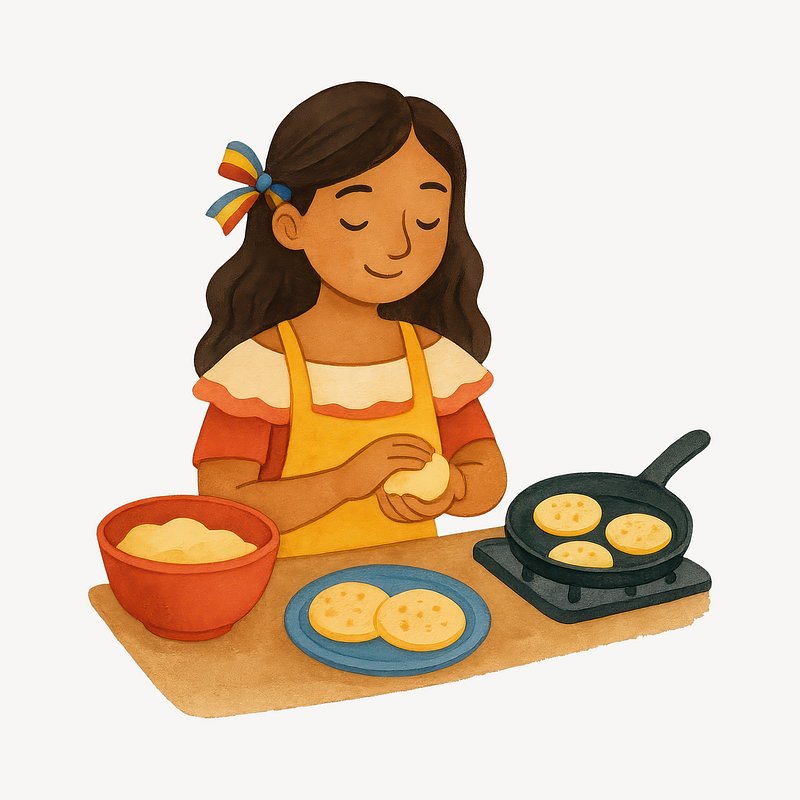 Venezuelan girl cooking arepas. https://www.rawpixel.com/image/20637033/venezuelan-girl-cooking-arepasView license