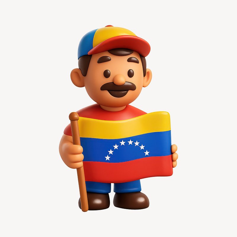 Cartoon character holding Venezuelan flag. https://www.rawpixel.com/image/20600442/cartoon-character-holding-venezuelan-flagView license