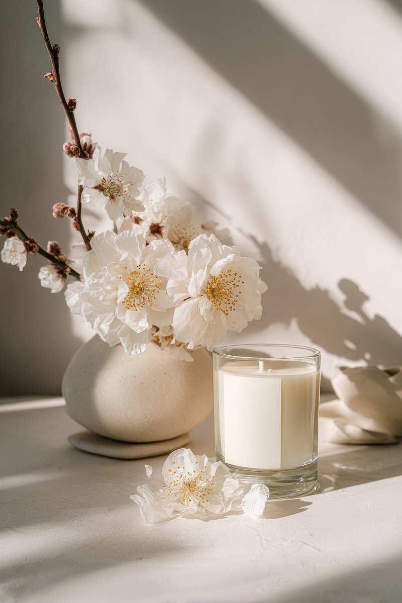 Serene candle with cherry blossoms. https://www.rawpixel.com/image/24636542/serene-candle-with-cherry-blossomsView license