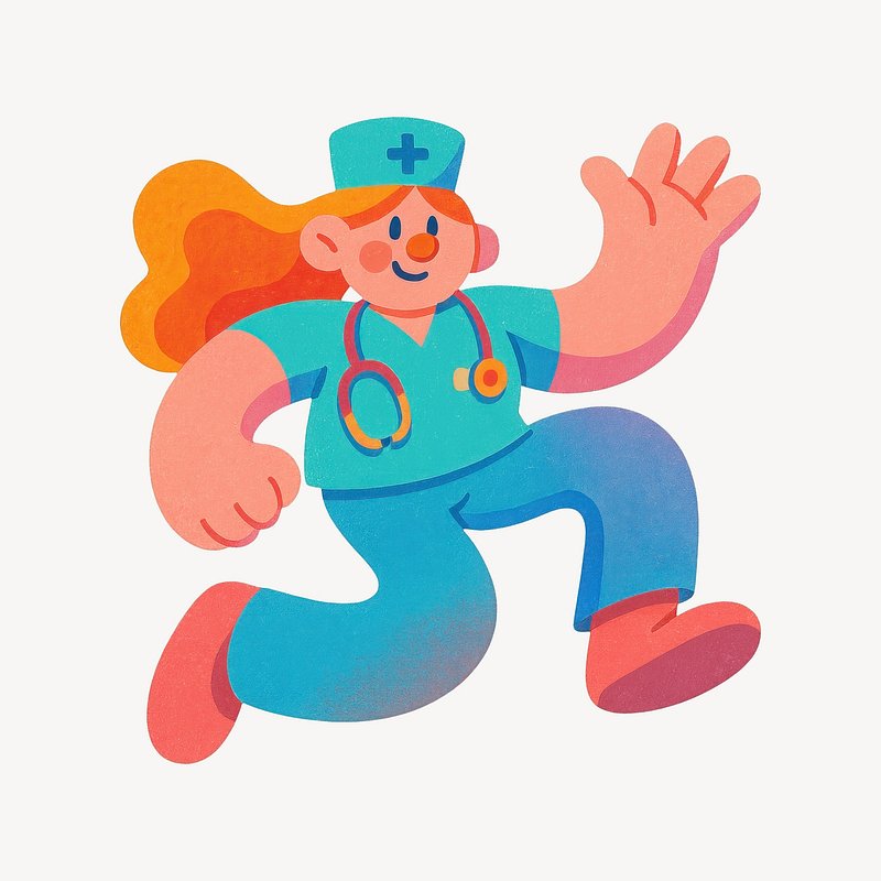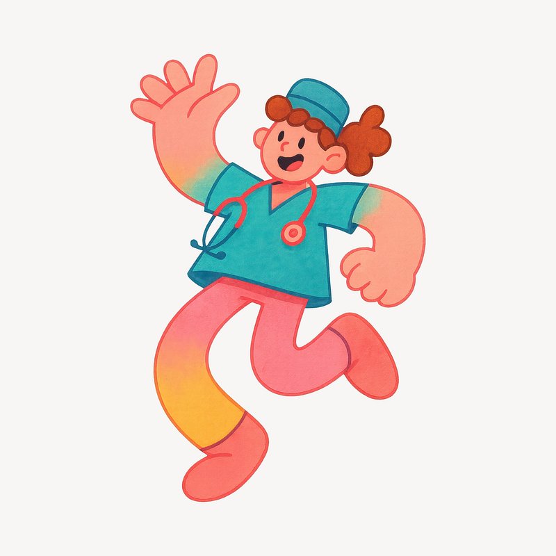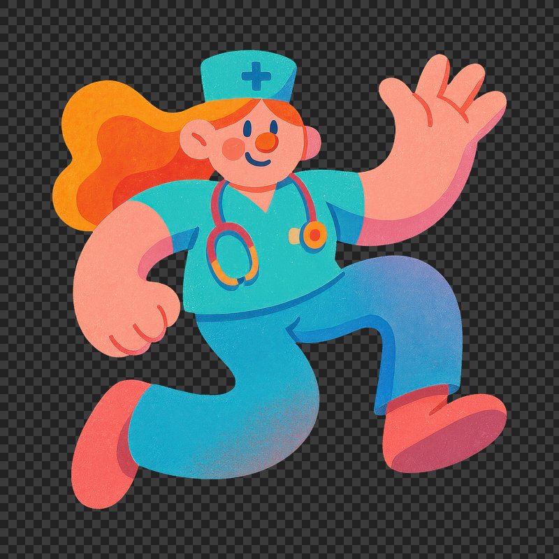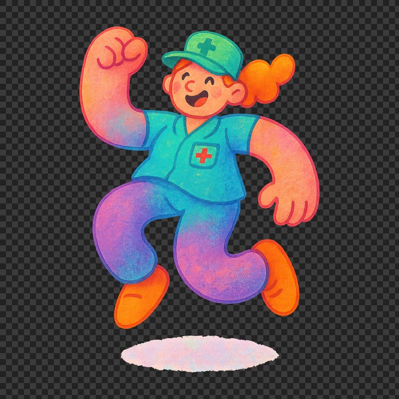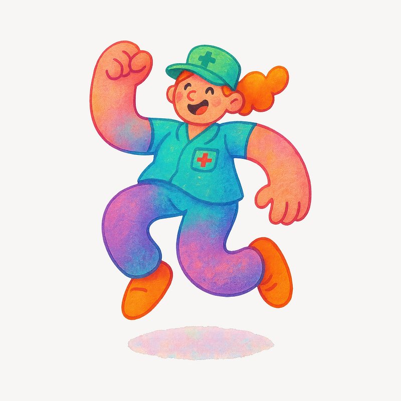 Joyful cartoon nurse jumping https://www.rawpixel.com/image/22390852/joyful-cartoon-nurse-jumpingView license