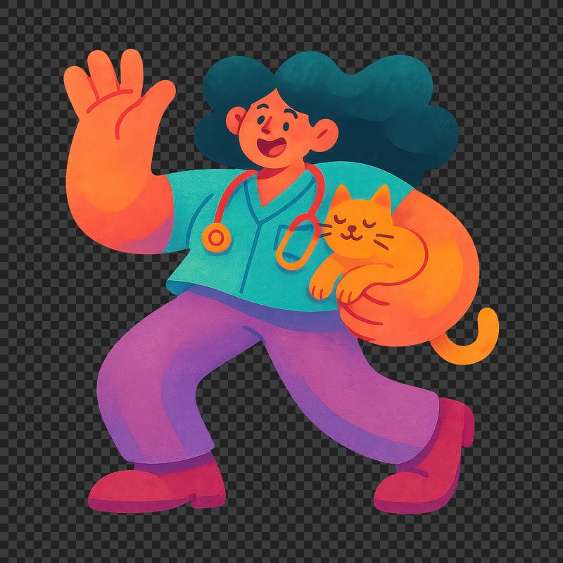 PNG Veterinarian waving with cat https://www.rawpixel.com/image/21909982/png-veterinarian-waving-with-catView license