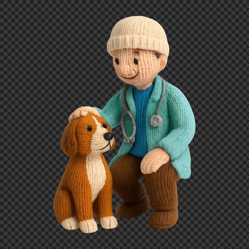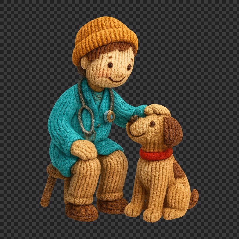PNG Knitted vet comforting dog https://www.rawpixel.com/image/23128329/png-knitted-vet-comforting-dogView license