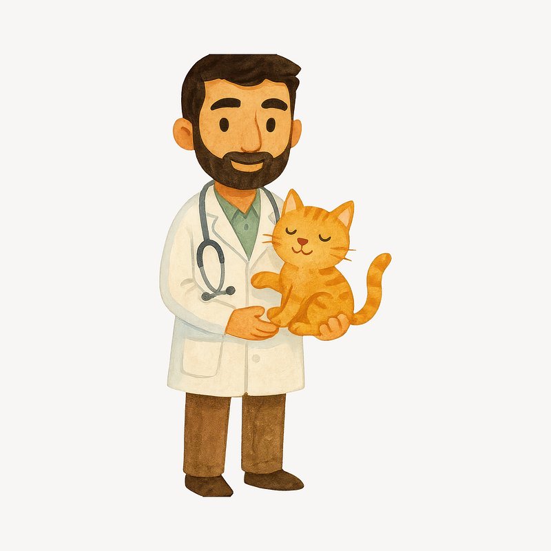 Veterinarian cartoon with cat https://www.rawpixel.com/image/22402860/veterinarian-cartoon-with-catView license