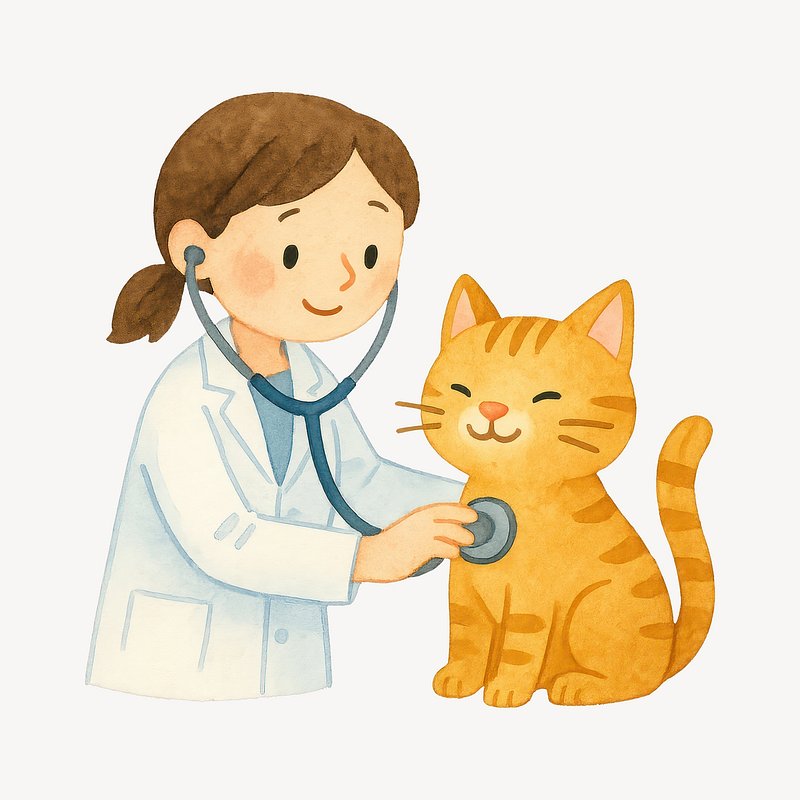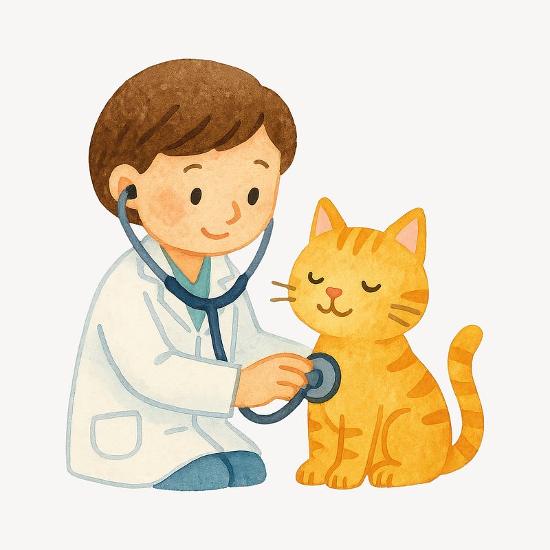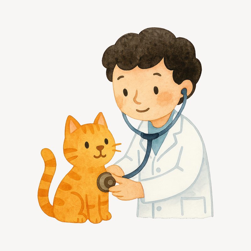 Cartoon veterinarian examining cat. https://www.rawpixel.com/image/20638387/cartoon-veterinarian-examining-catView license