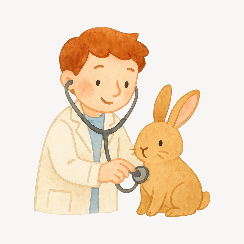Cute veterinarian examines rabbit illustration. https://www.rawpixel.com/image/20637190/cute-veterinarian-examines-rabbit-illustrationView license
