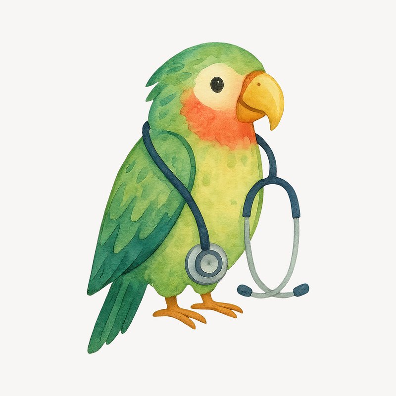 Parrot doctor with stethoscope illustration. https://www.rawpixel.com/image/20748272/parrot-doctor-with-stethoscope-illustrationView license