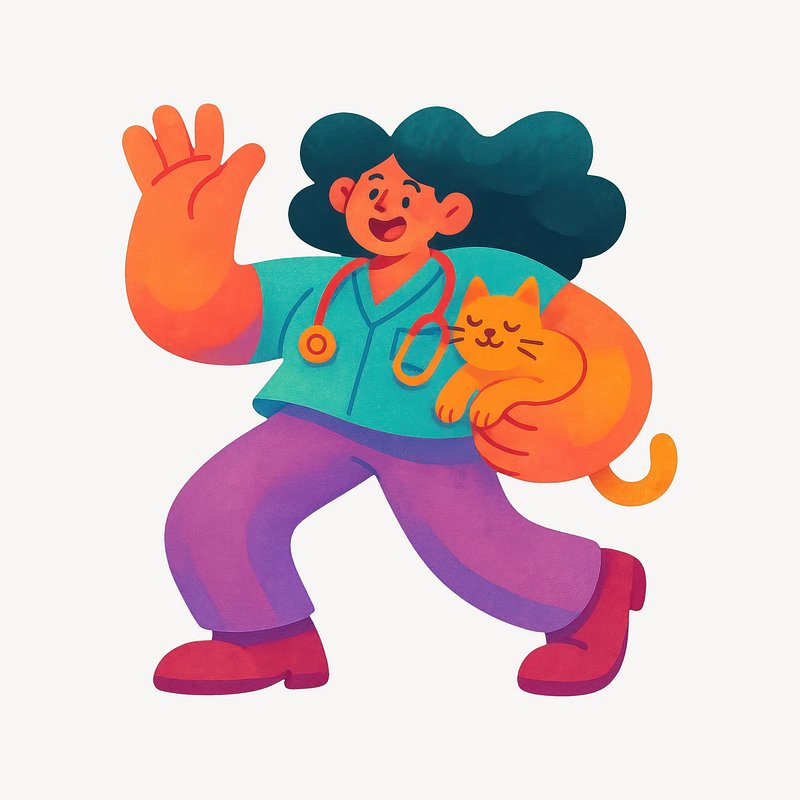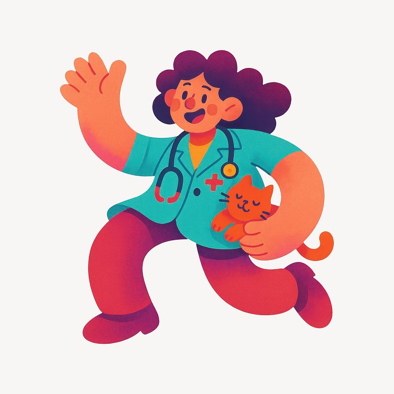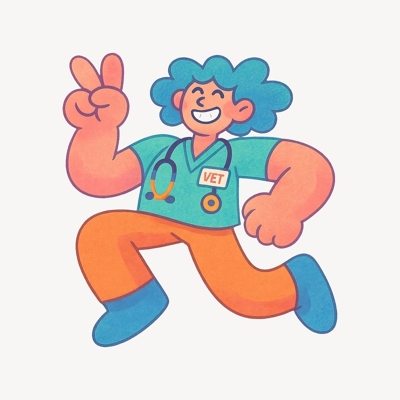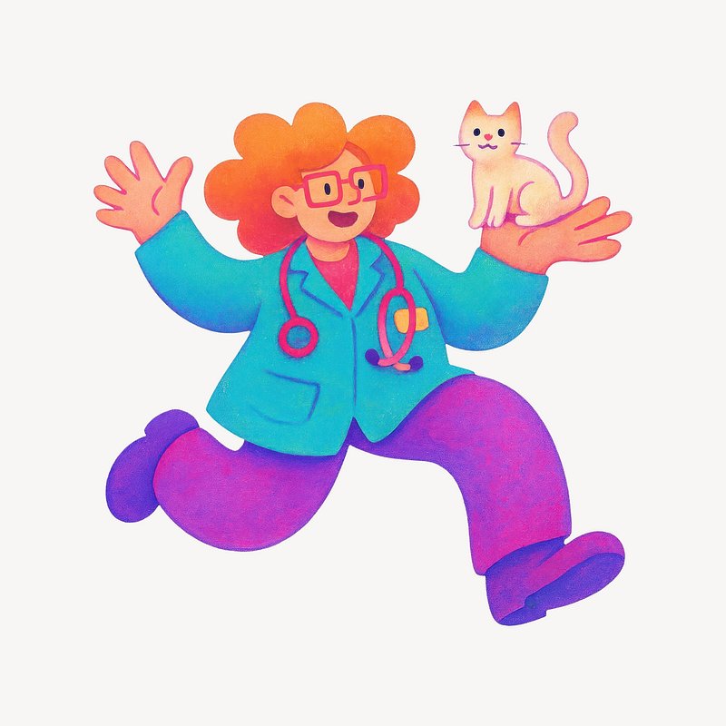 Cheerful cartoon veterinarian illustration. https://www.rawpixel.com/image/22397153/cheerful-cartoon-veterinarian-illustrationView license