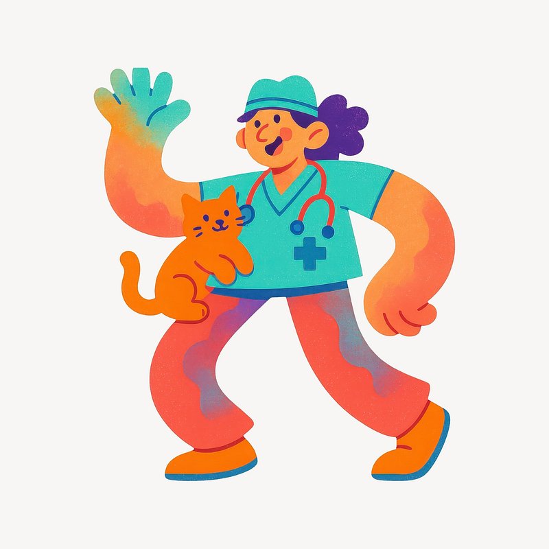Cartoon veterinarian with cat https://www.rawpixel.com/image/22392259/cartoon-veterinarian-with-catView license