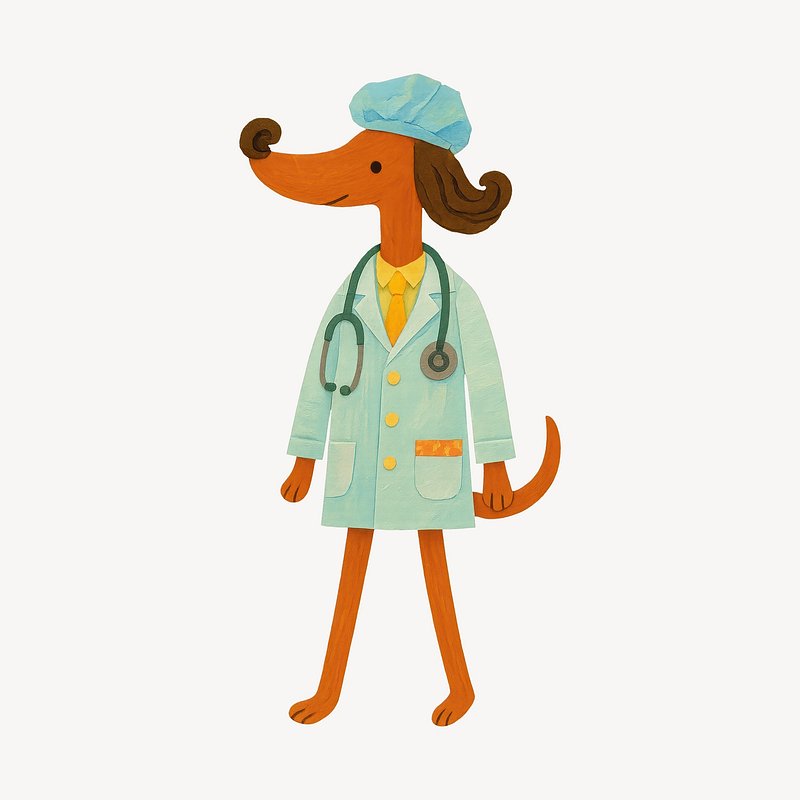 Colorful cartoon dog doctor https://www.rawpixel.com/image/21799721/colorful-cartoon-dog-doctorView license