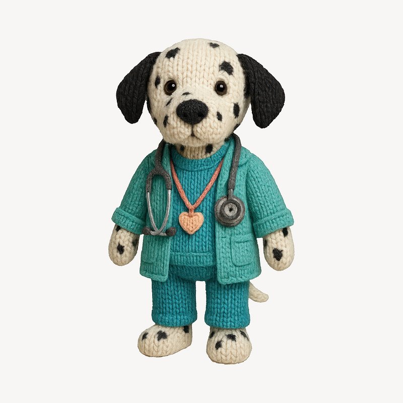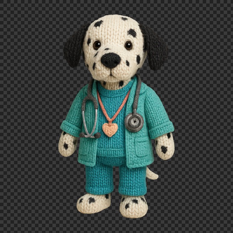 Crochet Dalmatian doctor illustration https://www.rawpixel.com/image/24530016/crochet-dalmatian-doctor-illustrationView license
