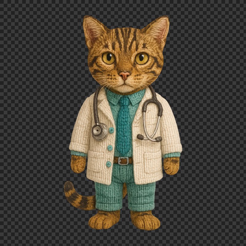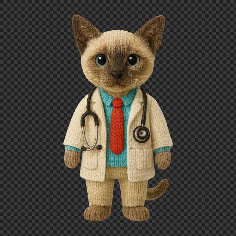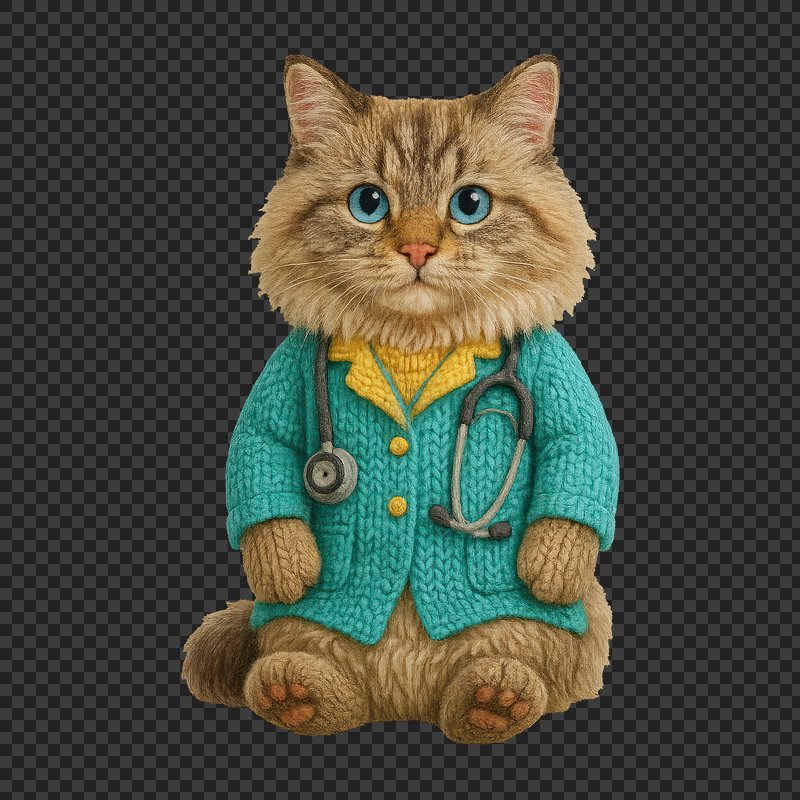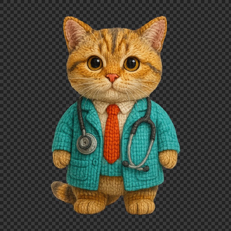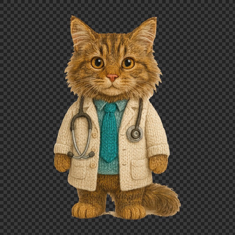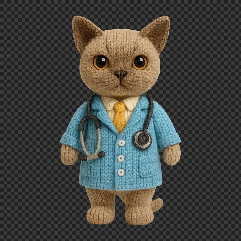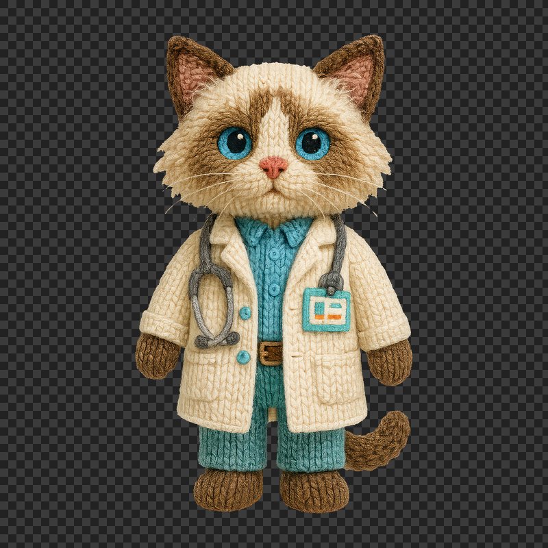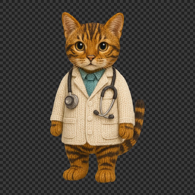 PNG Adorable knitted cat doctor illustration. https://www.rawpixel.com/image/24522003/png-adorable-knitted-cat-doctor-illustrationView license