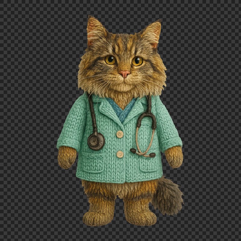 PNG Cat doctor in knitted attire. https://www.rawpixel.com/image/24477542/png-cat-doctor-knitted-attireView license