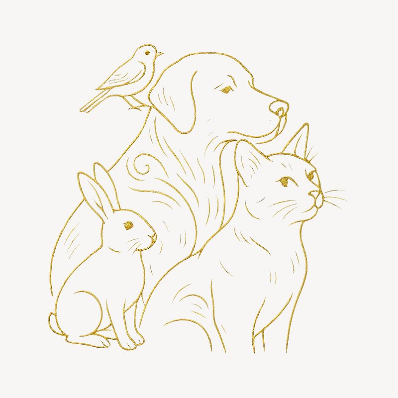 Illustrated pets in harmonious pose. https://www.rawpixel.com/image/24570284/illustrated-pets-harmonious-poseView license