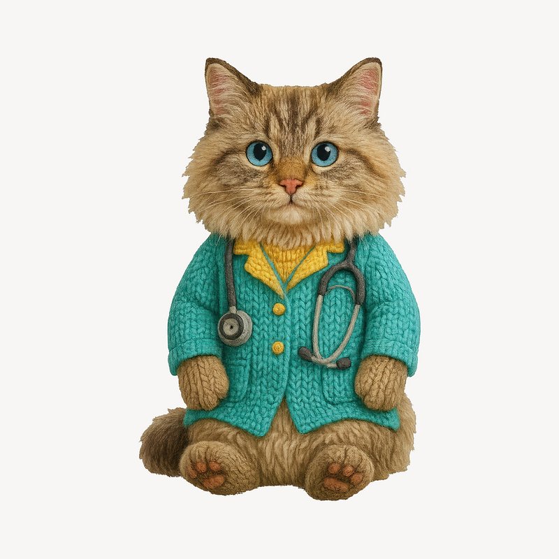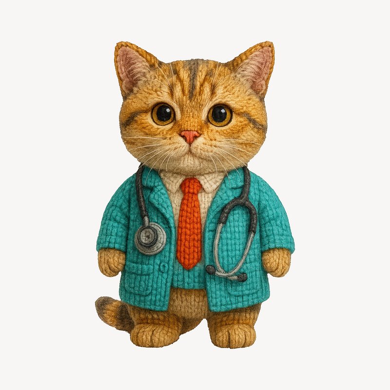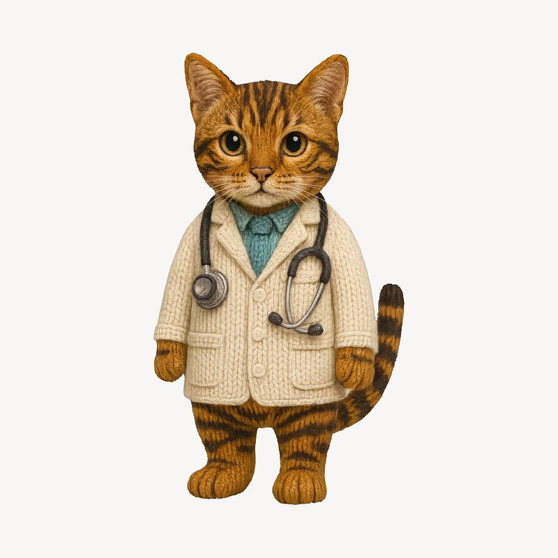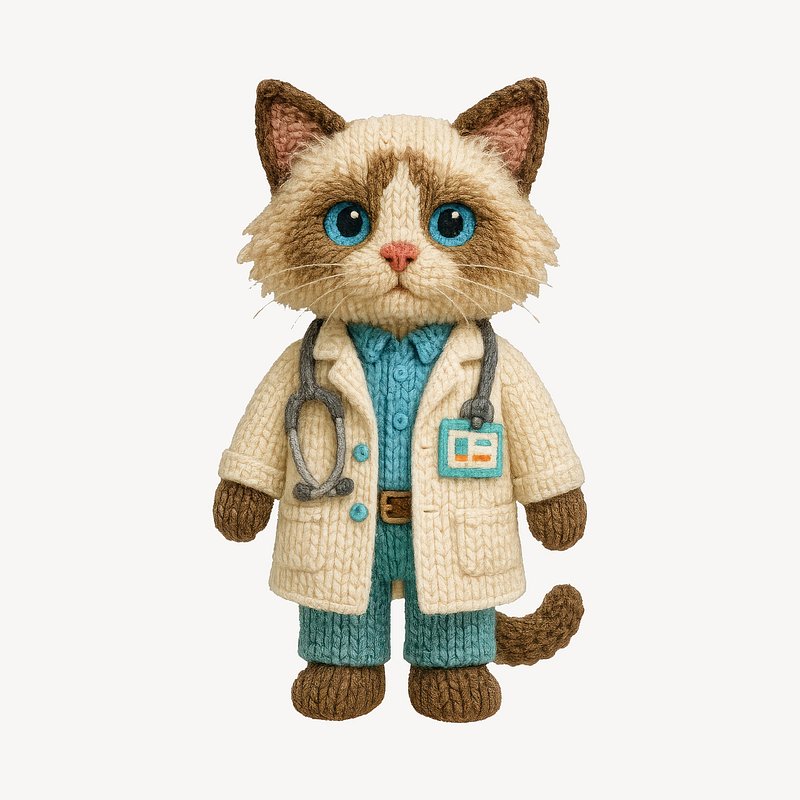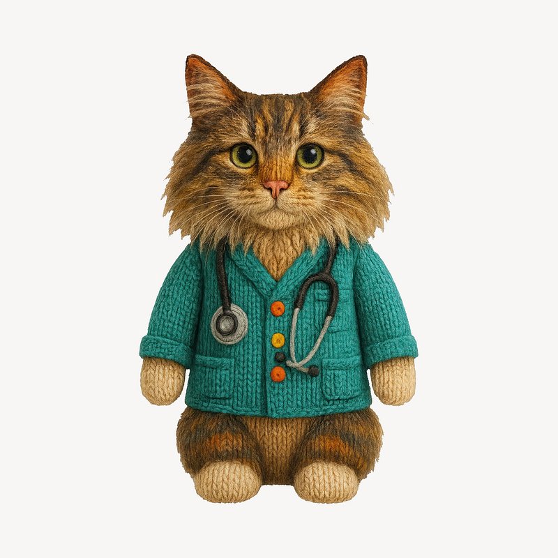Adorable knitted cat doctor illustration. https://www.rawpixel.com/image/24604014/adorable-knitted-cat-doctor-illustrationView license