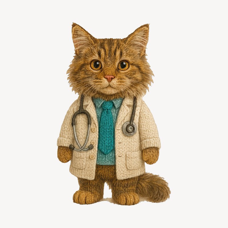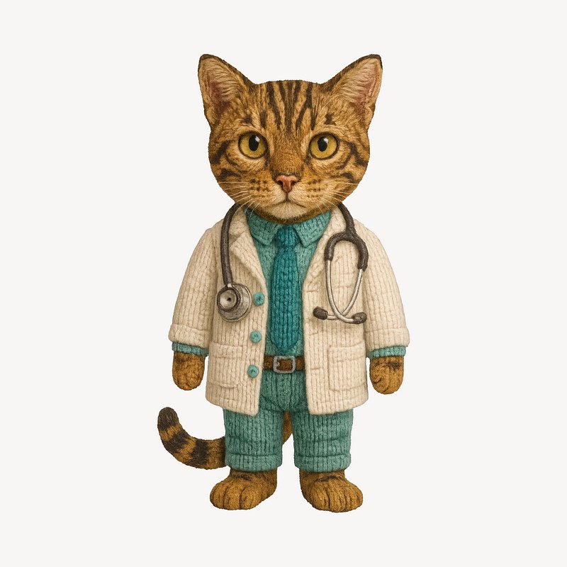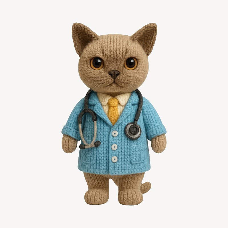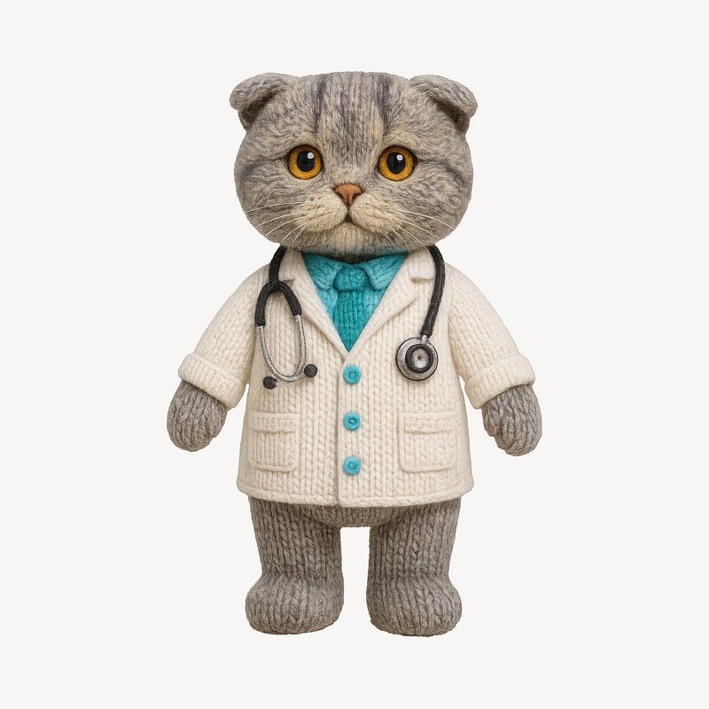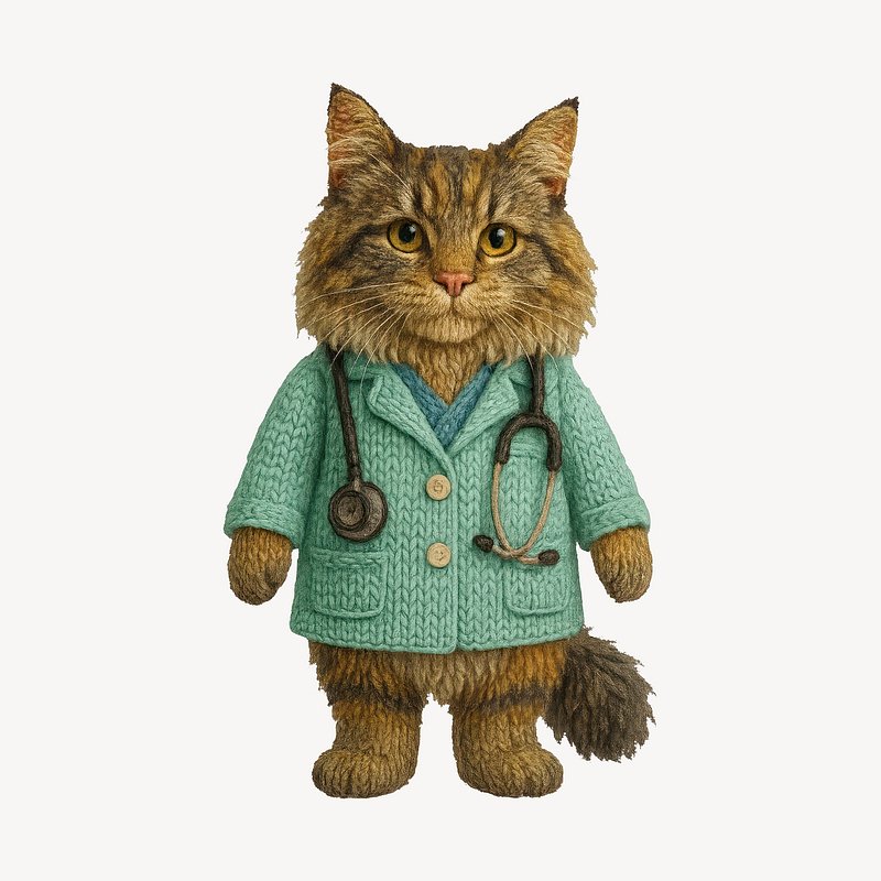 Adorable knitted cat doctor illustration. https://www.rawpixel.com/image/24604014/adorable-knitted-cat-doctor-illustrationView license