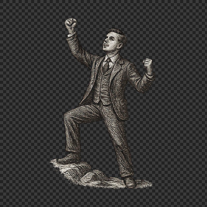 Vintage businessman triumphant success. https://www.rawpixel.com/image/24344143/vintage-businessman-triumphant-successView license